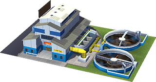 | Edificio de aguas residuales | Imagen | Capacidad | Coste | Área contaminada | Requisitos iniciales |